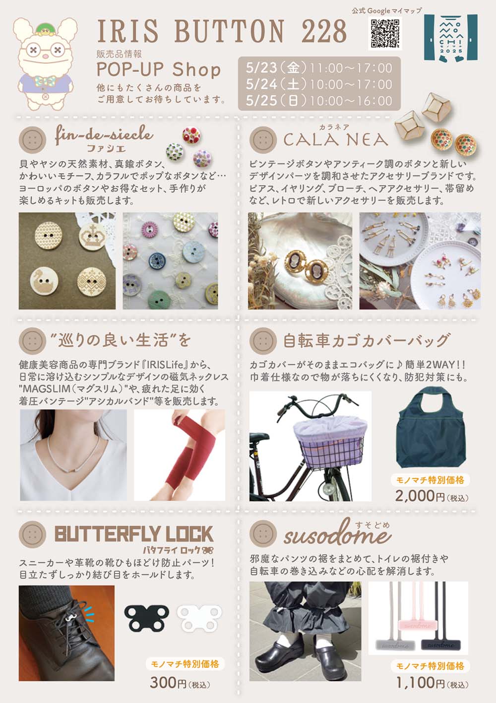 [カード配布]134)辨天湯、136)コンポ、240)真鍮のKSJ、246)ワールデザイン、261)ITORICOT、130)トーカ、239)花火の若松屋、262)マルコ帽子店、245)PARACOのパラコード、312)くるみボタン工房 MiSuZuYa、554)ゆう工芸、361)DOWN TOWN GEAR(Brass)、デザビレ207)kucch、228)IRIS BUTTON、565)クサガヤレジンクラフト