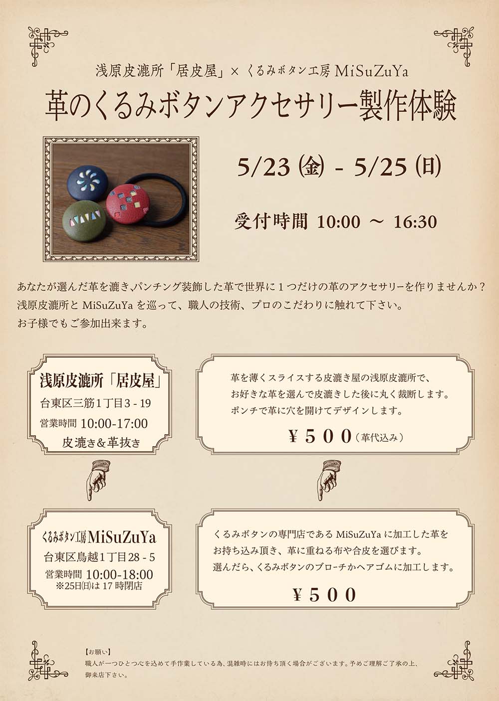 [ワークショップ]312)くるみボタン工房 MiSuZuYa:台東区鳥越1-28-5