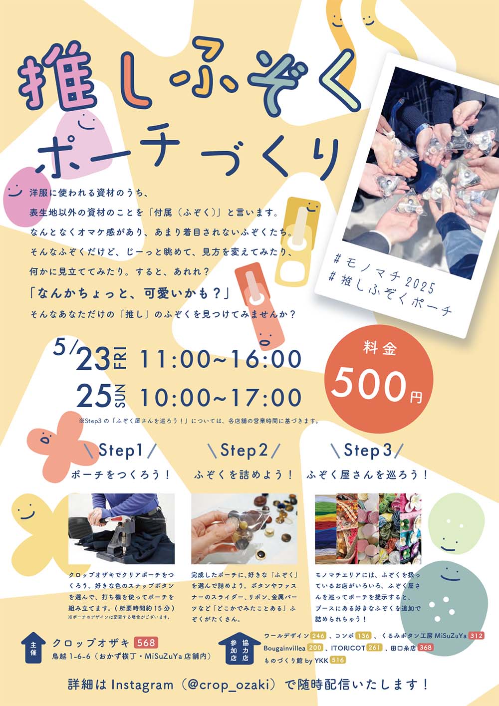 136)コンポ 312)くるみボタン工房 MiSuZuYa 150)タカシマボタン 359)REGARO PAPIRO 245)PARACOのパラコード 246)ワールデザイン 257)Studio門出|もん de マルシェ 260)HARATA DESIGN Lab. 261)ITORICOT 568)クロップオザキ